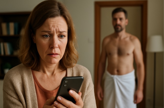 Kiedy poszedł pod prysznic, jego żona zajrzała do kieszeni jego spodni i znalazła telefon pełen podejrzanych wiadomości i połączeń.