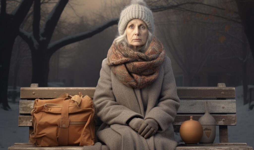 Ta kobieta siedziała sama na ławce, była już w wieku emerytalnym. Obok niej na ławce leżała duża torba. Widać było, że jest jej zimno, więc podeszłam do niej i zapytałam, czy mogę jej w czymś pomóc.