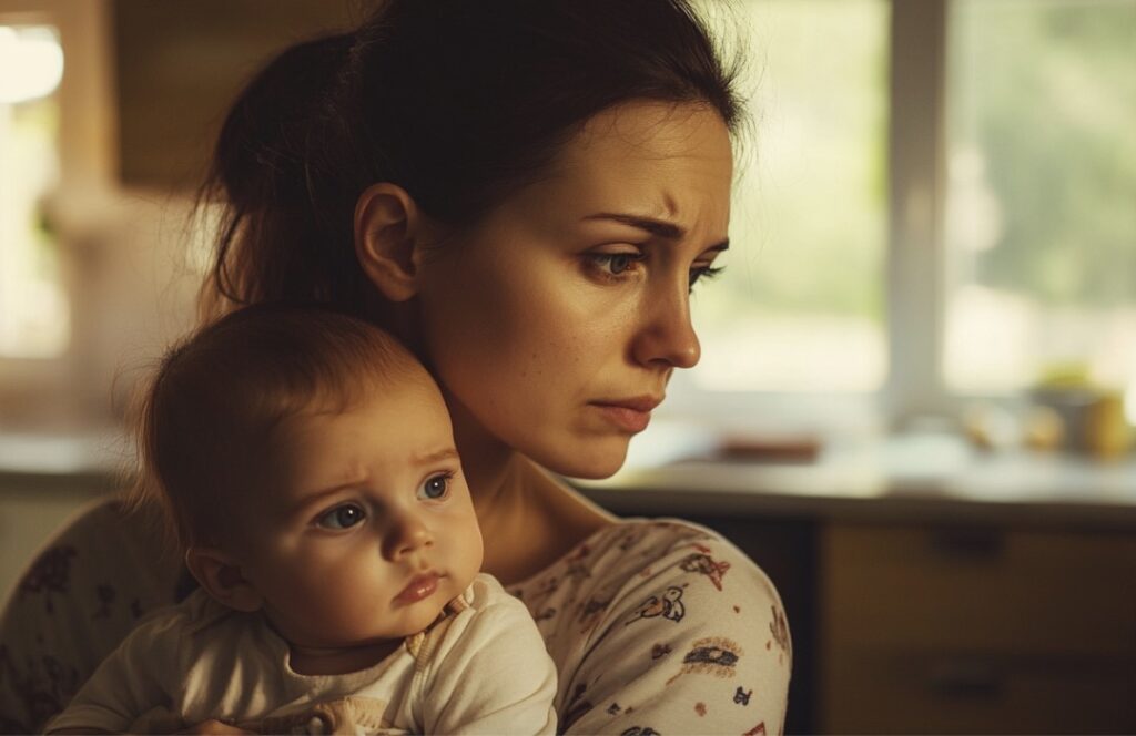 Jarek obudził się, zaczął marszczyć nosek, szykując się do płaczu. Maria usłyszała hałas, szybko otarła łzy i podeszła do syna.