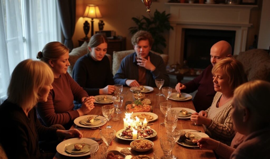 Wszyscy goście nagle zamilkli, a w pokoju zapadła cisza.