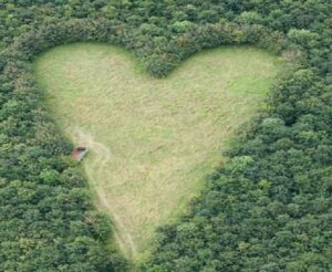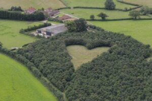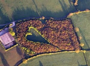 Mąż przez wiele lat sadził na łące dęby, dbał o nie, przycinał je, by ze wszystkich stron otaczały ulubione miejsce żony. W centrum pozostawił trawnik w kształcie serca, oddając hołd pamięci swojej ukochanej kobiety.