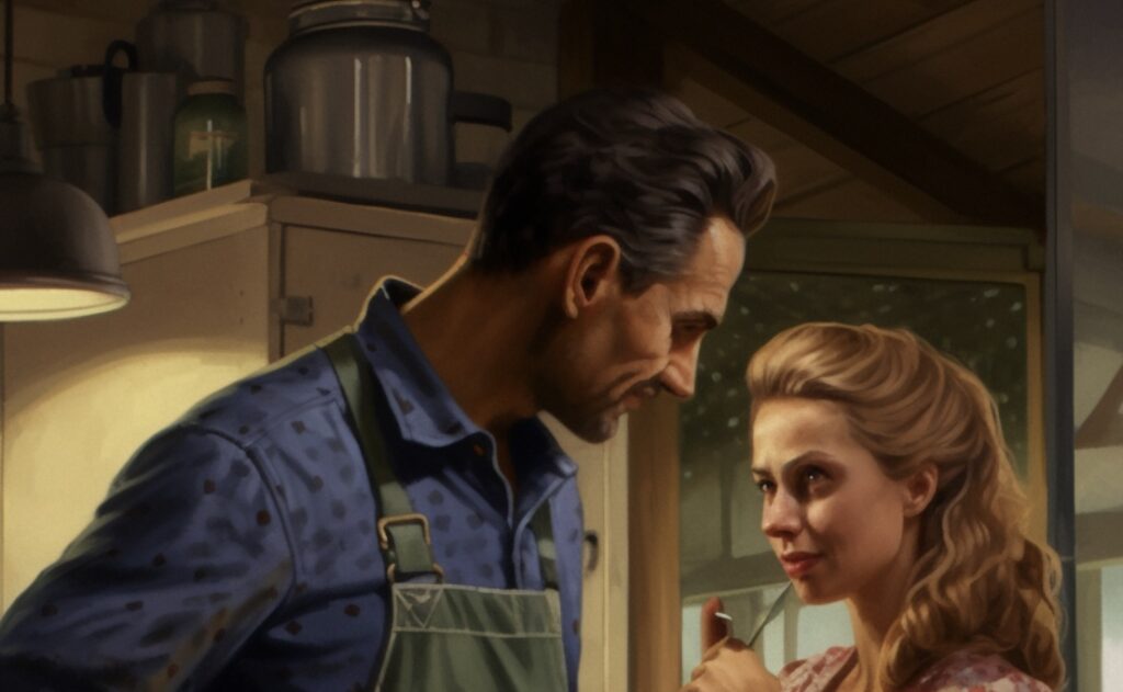 Kobieta poszła do domu. Wieczorem jej mąż wrócił, przyniósł kwiaty, zaczął opowiadać o swojej pracy i pokazał jej próbki tapet do salonu w domu. Uśmiechał się. Był całkowicie spokojny. Zapytała: “Czy mnie kochasz?”, a on odpowiedział z zapałem: “Oczywiście!”