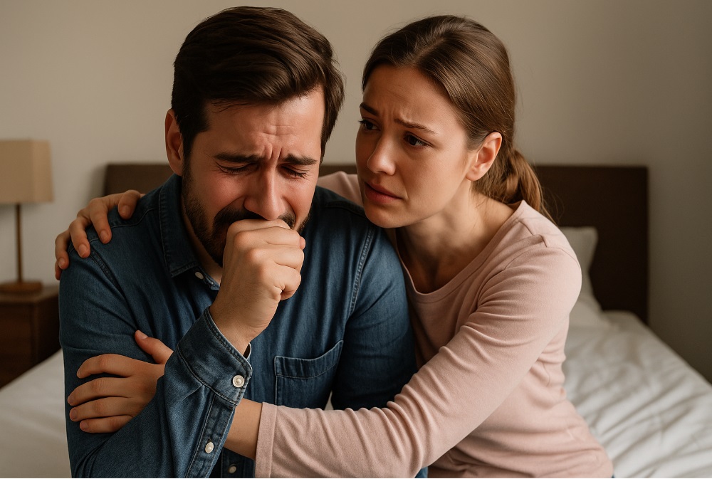 Karolina, słysząc jego łzy, nie mogła już dłużej ukrywać się w ciszy. Wyszła spod łóżka i mocno przytuliła ukochanego. Marcin znowu się rozpłakał — tym razem z ulgi. Karolina nie zadawała pytań, nie oskarżała. Obiecała mu, że będzie przy nim zawsze. Że razem przetrwają wszystko.